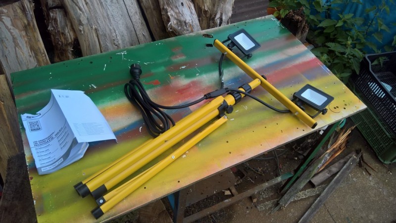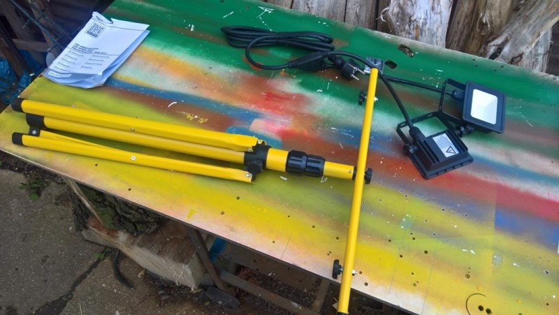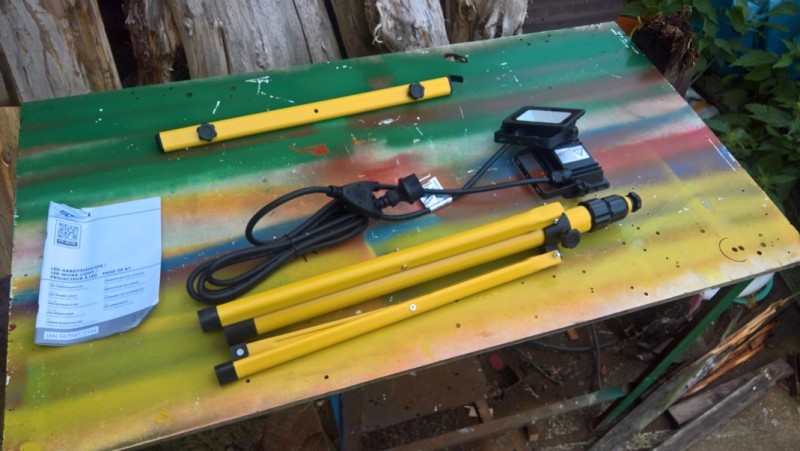 A jako poslední tu je pracovní světlo s praktickým stojanem (trojnožkou). Světlo se skládá ze dvou LED světel na výškově stavitelném stojanu. Výšku lze nastavit do 150 cm.