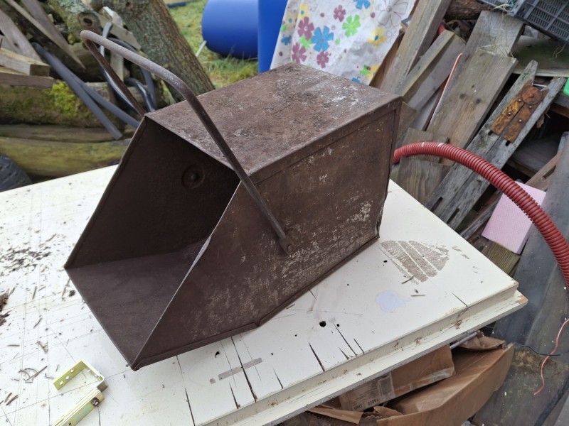 Hotovo. Je to šikovná pomůcka pro nabírání a vysypávání uhlí (až přejdu na peletky, tak to půjde použít i na ně). Ikdyž to není moc pohledné, je to funkční.