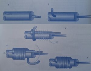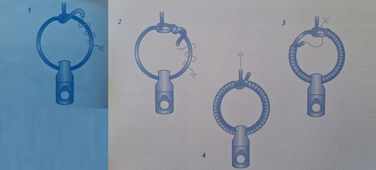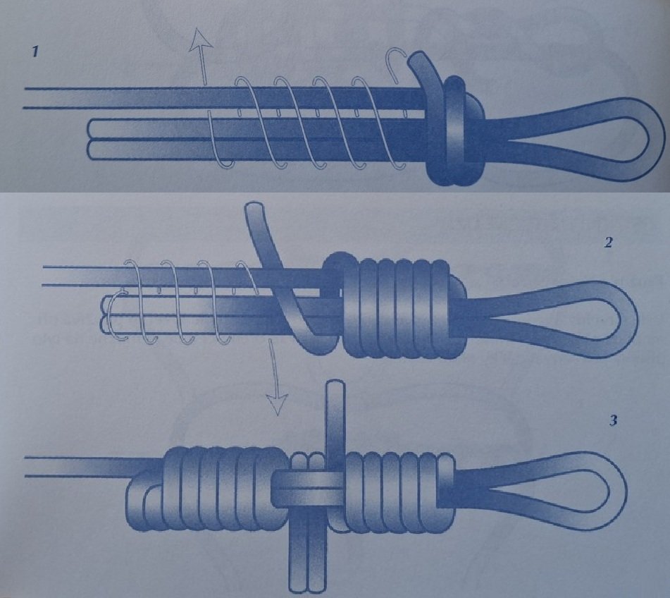 K připojení potřebujete měkký (ne pérový – struna) a tenký drát. Postup vázání je třeba dodržovat přesně podle nákresu.