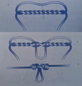 Jedná se o kombinaci zámkového uzlu a alpského motýlka.