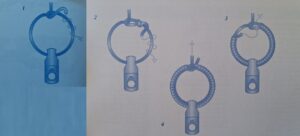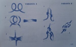Dvě různé varianty posuvných (klouzavých) smyček, které jsou používány např. ke spojování obratlíků a zarážek.