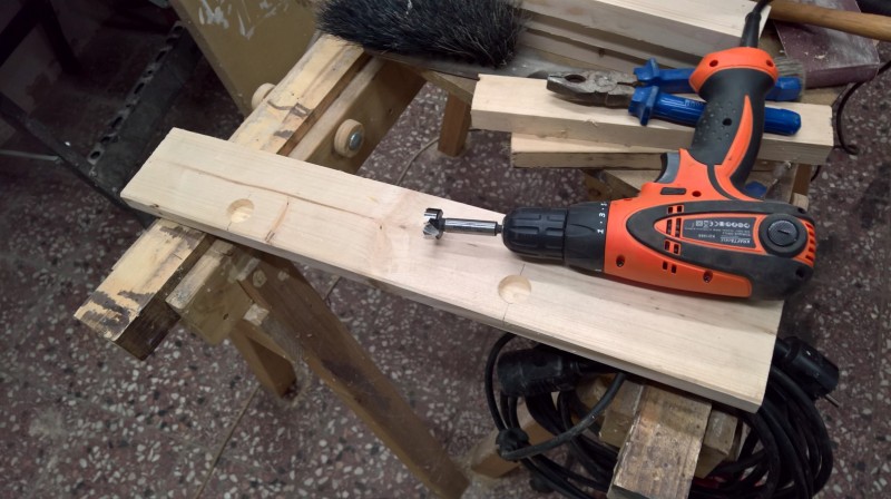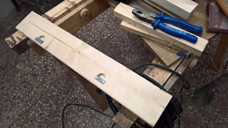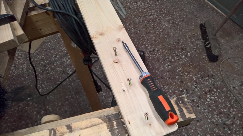 Jako samotné věšáčky jsem do prkna zavrtal několik vrutů. Vruty jsem navrtal šikmo vzhůru, aby zavěšené kabely neměly tendenci sklouzávat. A bylo hotovo. V galerii je to znázorněno graficky…
