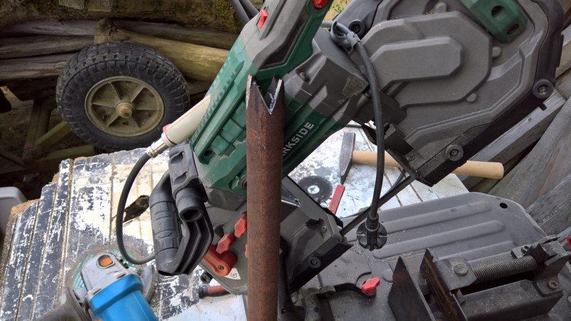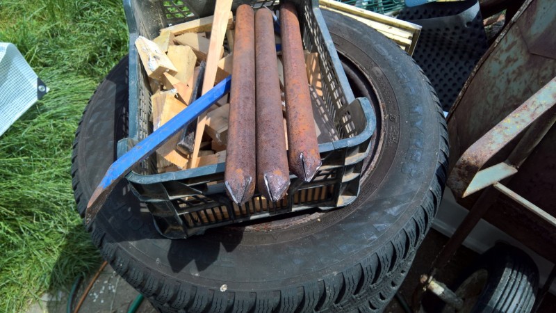 Hlavní věc byla výroba kvalitních sloupků, pro připevnění ozdobného plůtku. Dřevěné sloupky jsem okamžitě zamítl, protože vydrží tak rok – maximálně dva. A tak jsem je vyrobil ze starých rámů z lešení HAKI, které mám doma a které nepoužívám, neboť se kymácí jak haluz ve větru.