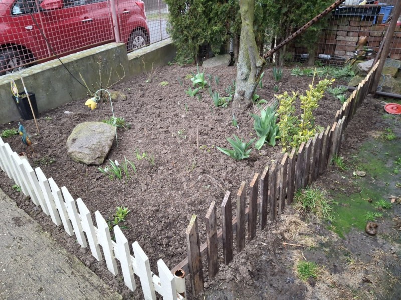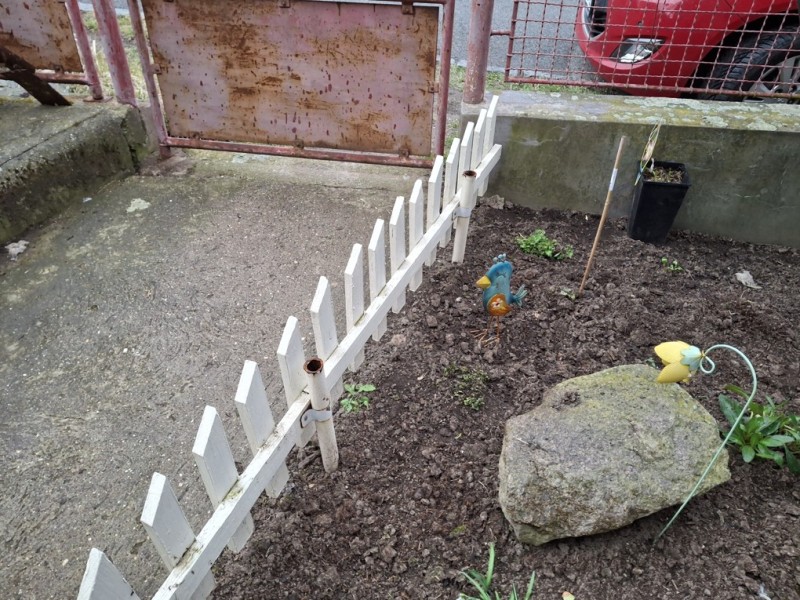 Jelikož u vstupu na pozemek má paní domu okrasnou zahrádku a zároveň máme nablblého jezevčíka, bylo nutné vyrobit malý okrasný plůtek k této zahrádce. Tím se zamezí jezevčíkovi vstupovat do prostoru jemu zakázánému.