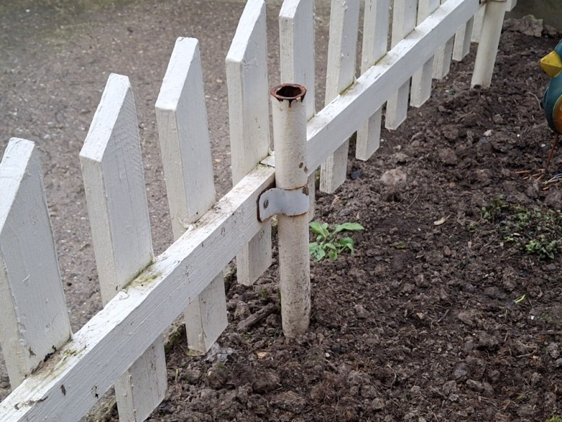 Z rámů jsem vyřízl kusy trubek o délce 60 cm. Na jednom konci jsem je zašpičatil (viz galerie) a bylo v podstatě hotovo. Ještě jsem je důkladně natřel barvou a bylo úplně hotovo. Pro první část plotu jsou sloupky 3 (jeden uprostřed, aby se plot neprohýbal).