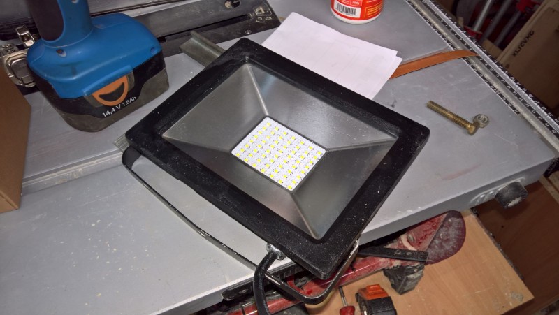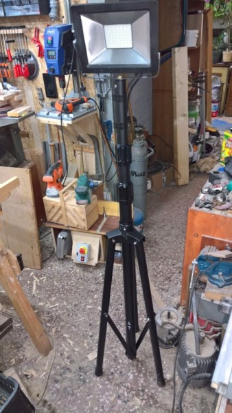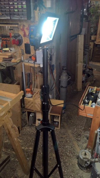Níže v galerii je postup připevnění pracovního světla na stojan i s krabičkou pro připojení napájecího kabelu. Pracovní světlo mám již nějakou dobu, jedná se o LED lampu 30W, což svítí opravdu hodně a doteď jsem ji měl upevněnou jen na 2,5m dlouhé střešní lati. Ta se velmi ráda kácela k zemi, takže hrozilo rozbití světla. No a díky výhodné koupi mám teď světlo na stabilní troj-nožce a vysunutelné až do výšky 3m.