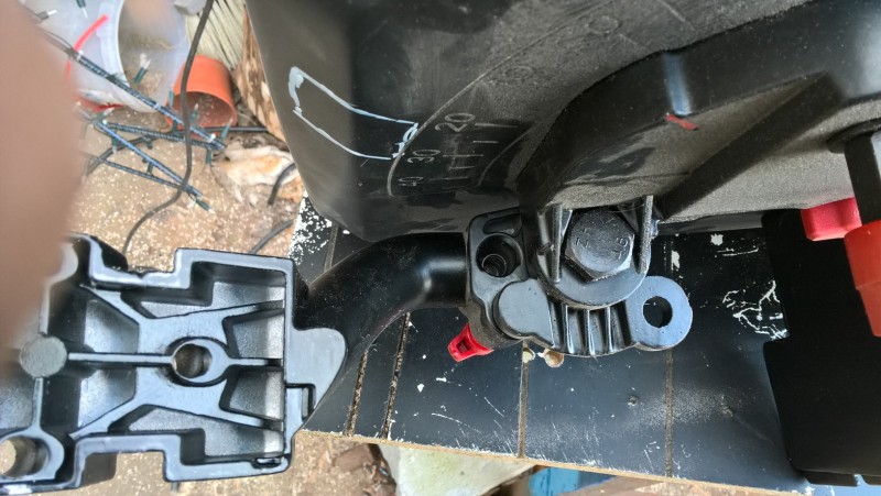 Tak tadyto se výrobci fakt nepovedlo. Pokud jsem měl pilu upevněnou v originálním stojanu, při jejím vyklopení do pohotovostní polohy se kryt pásu opíral o stojan a nešel zajistit. Chybělo místo cca 1 cm, což je dost. Asi někomu šly oči šejdrem, když toto navrhoval 🙂