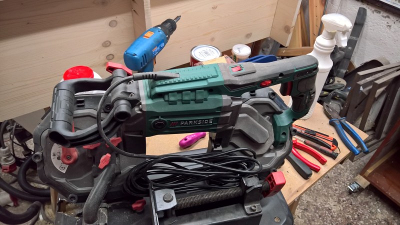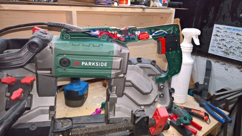 Před časem jsem v Lidlu koupil pásovou pilu na kov Parkside. Jelikož soudruzi v SRN udělali několik chyb, musel jsem provést pár úprav.